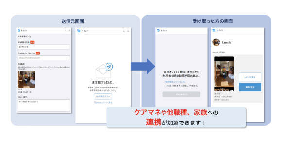 「トルト」上で結果を第三者に共有することも可能なため、家族や多職種にもリアルタイムでわかりやすく状況を共有することが可能になります。