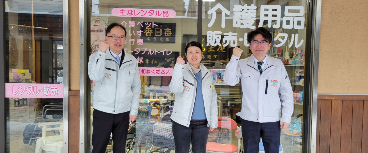 創業1629年(寛永6年)。紙製品、日用雑貨等の卸・小売りに始まり、時代の流れに合わせ業態を変え、2010年に福祉用具のレンタル・販売、住宅改修事業に参入しました。