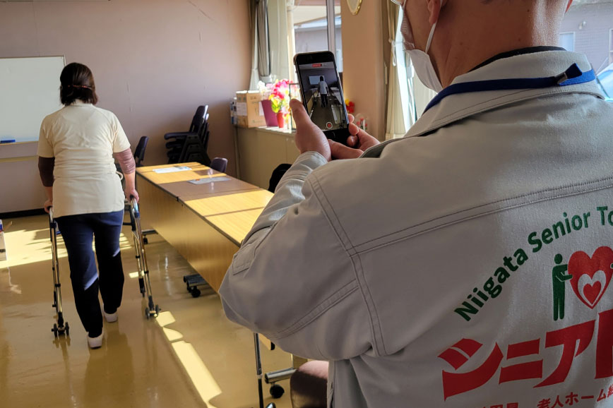 歩行補助具を求めるご利用者様やケアマネージャー様に対し、客観的な解析結果に基づき用具をご提案できること、また、動画撮影~解析までに要する時間がわずか数分であること、さらに、スマホ1台があればできる手軽さに驚きました。今重要視されている「科学的介護」の観点からも、同業他社に先駆けていち早く導入することと致しました。