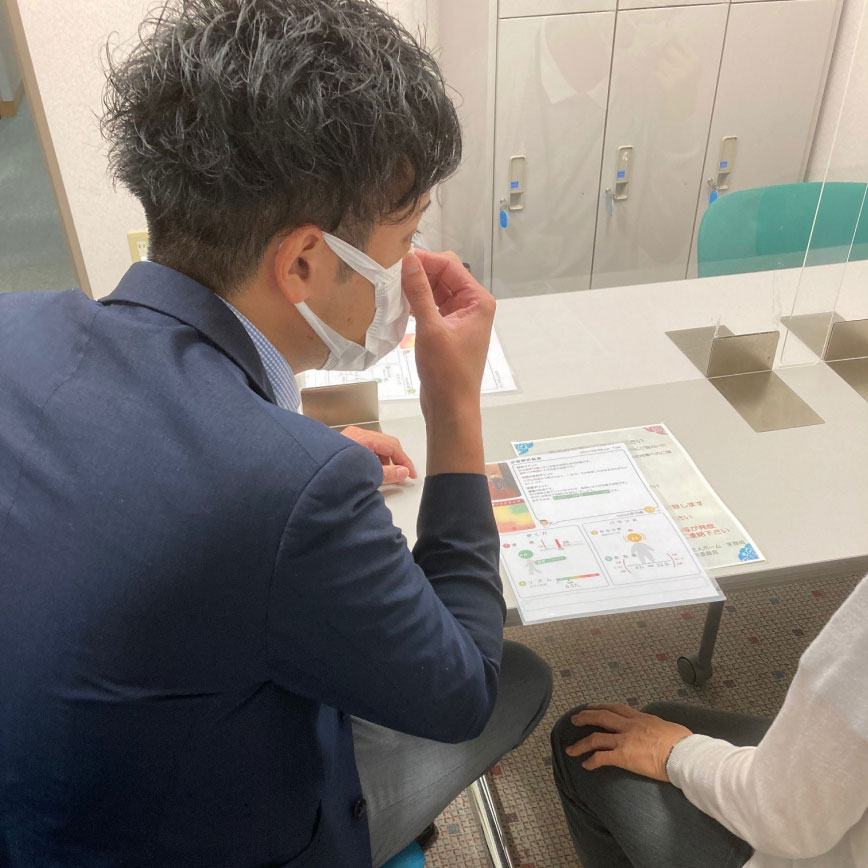 - 営業活動として、地域包括支援センター主催の介護予防事業の中で、転倒予防講座を提案し開催しています。講座では、CareWiz トルトで歩行動画を撮影し、コミュニケーションシートの内容を説明、そしておすすめの運動をご案内しています。参加者からは現状の歩行状態を確認することができ、運動が前向きになれたなど、参加者や地域包括支援センターの皆様からも高評価ですし、地域との関わりが増えたことで私自身のやりがいも感じています。