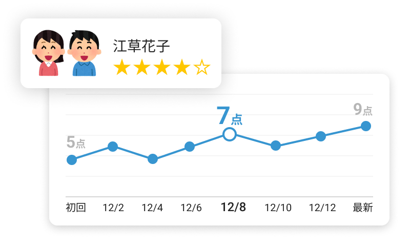 コミュニケーションシートを活用することで、本人や家族、ケアマネージャーに根拠のある説明が行いやすくなります。「トルト」上で結果を第三者に共有することも可能なため、家族や多職種にもリアルタイムでわかりやすく状況を共有することが可能になります.
