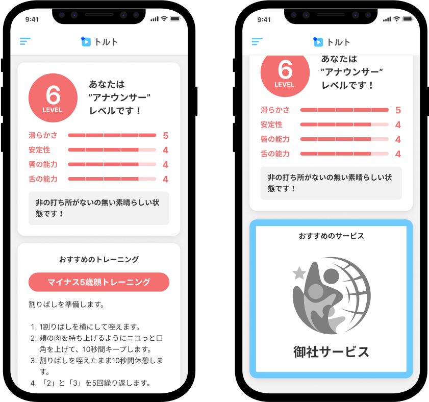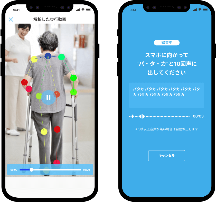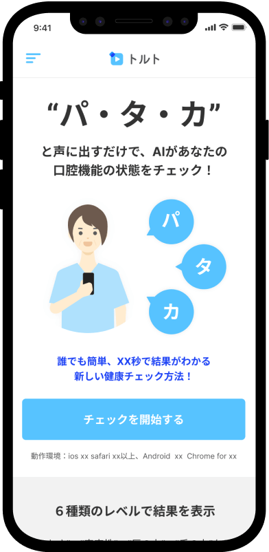 - 口腔では音声解析し、話す、食べるの基礎となる力を簡単分析