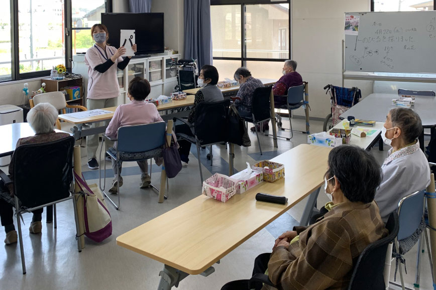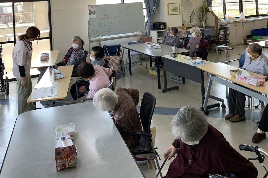 地域密着型のデイサービスとして定員18名で運営しています。介護保険が開始される前の自治体の委託事業として運営していた事業所で、古くから地域の皆さまにご利用いただいています。そういった歴史を引継ぎながら、これからも地域に根差したデイサービスとなれるよう、日々、活動しています。人と人とのつながりを大切にし、また、その人一人ひとりに役割を担っていただけるよう、ご利用中は、“個”の時間と”集団”の時間をバランスとりながら過ごしていただいています。要支援の方から要介護5の方と、幅広い要介護度の方に、心地よい時間と空間を持っていただけるよう、ご支援させていただいております。