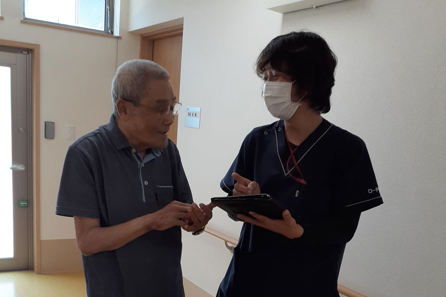 ご入居者様やご家族の方の満足度向上に効果があったと実感しています。CareWiz トルトの解析結果(コミュニケーションシート)は私たち施設側にとって、日々提供しているサービスの価値を見える化できる良いツールとなっていますが、同時に、普段なかなか直接会うことが難しいご家族の方が、ご入居者様の元気な状態を知ることができる大切なツールにもなっています。そして何より、CareWiz トルトによる歩行の評価テスト自体がご入居者様にとって一つの楽しみにもなっています。4月の介護報酬改定の影響で業務が立て込んでしまい、歩行の評価テストが1ヶ月後ろ倒しになった際には、ご入居者様から「撮ってくれるのを待ってた」というお言葉をいただいたこともありました。CareWiz トルトの導入により新しい楽しみが増えただけでなく、その結果をご入居者様からご家族の方に共有していただくことで喜びや安心が生まれ、満足度向上に繋がっていると思います。